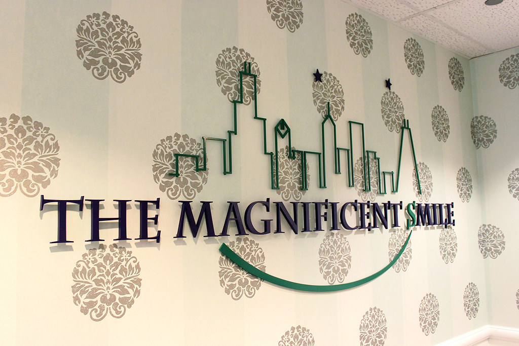 We recommend high-end materials like dimensional acrylic, brushed aluminum, stainless steel, and glass. These materials create a clean, modern, and welcoming look that enhances your brand presence in waiting areas and front desks.