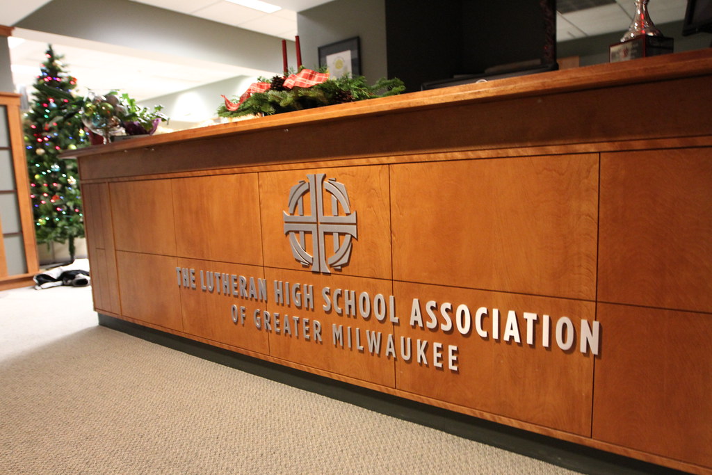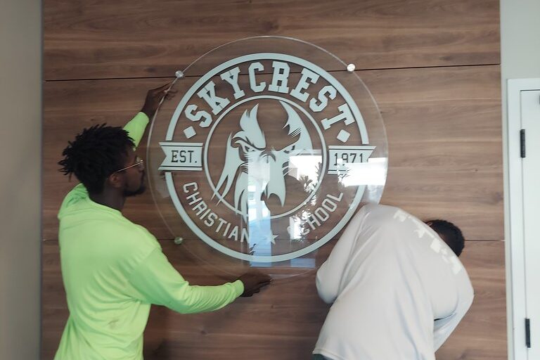 We recommend using cast bronze, etched metal, or clear acrylic panels with standoffs. Some schools also incorporate stained glass, wood backers, or custom lighting to elevate the presentation.