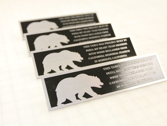 Etched metal plaques offer a sophisticated way to add images and text to your plaque. The etching process uses chemicals or lasers to create detailed designs on the metal surface. This technique allows for fine details and intricate designs, making it perfect for complex logos or detailed images.