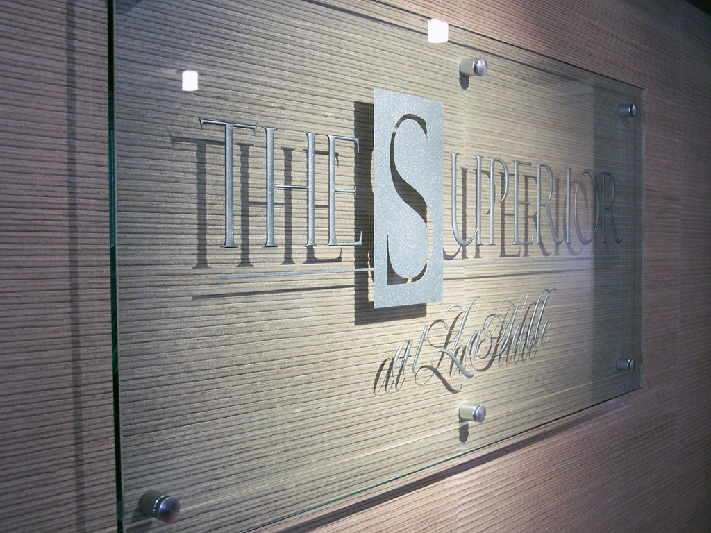 Acrylic, metal, or glass signs mounted behind the front desk are a popular choice. For added impact, halo-lit letters and backlit panels with push-through acrylic logos help elevate the guest experience from the moment they enter.