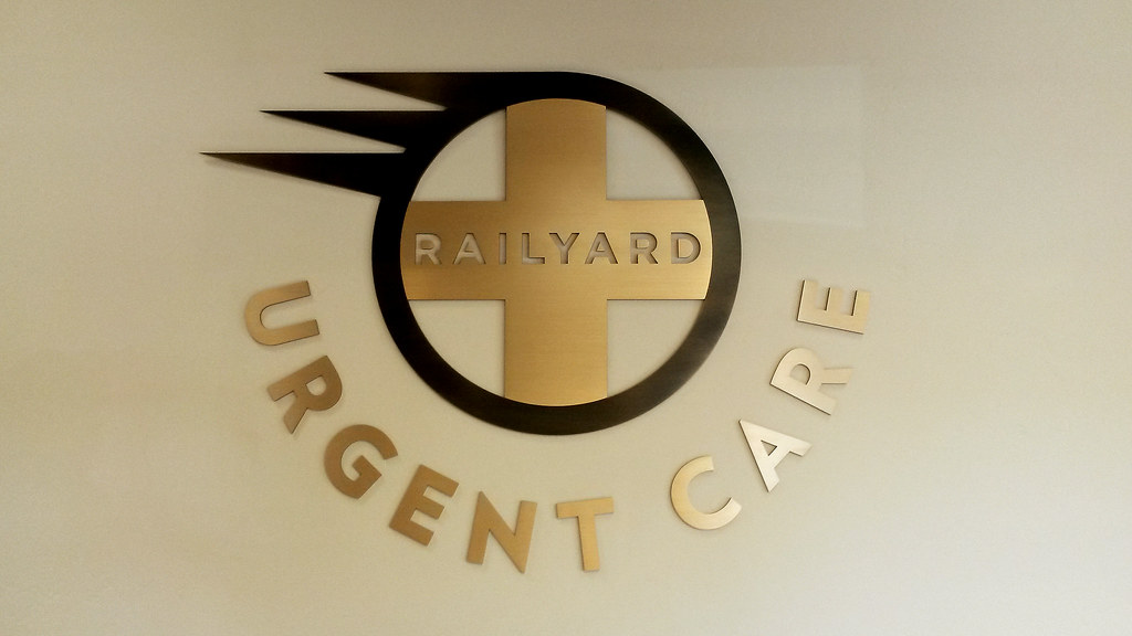Natural brushed bronze logo with Dark Oxidized Bronze Logo Accent piece Interior medical office signgae