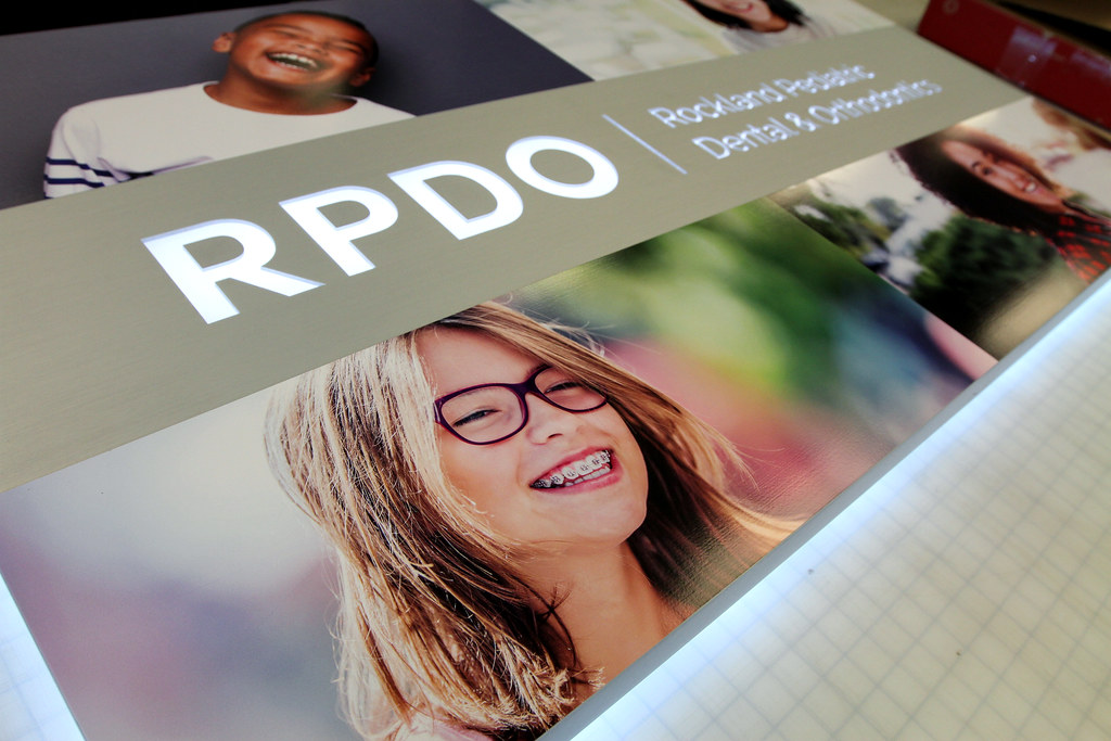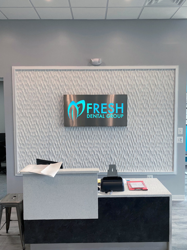 Dental Office Logo Lobby Sign Frosted acrylic panel with Full Color digital printed image and graphics on face
