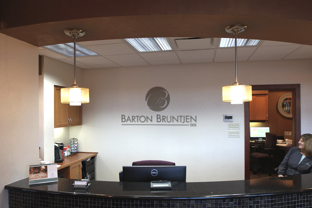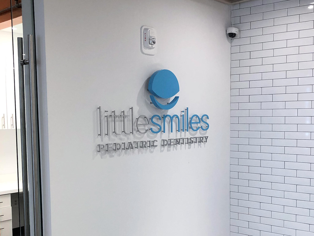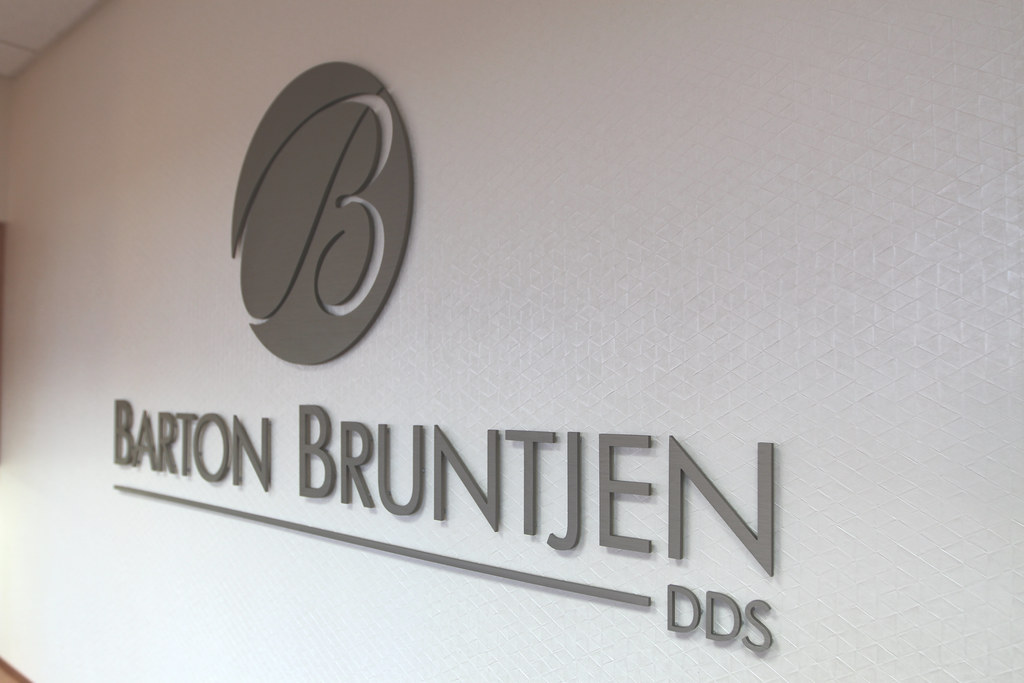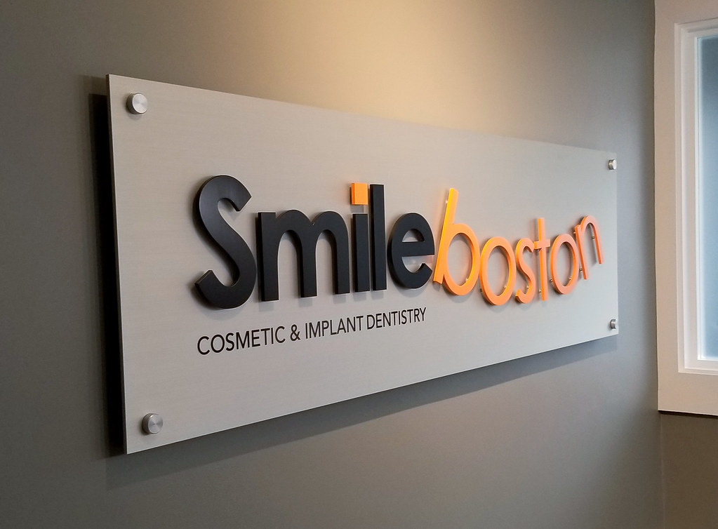Brushed and polished accent cut metal logo and letters for dental office sign