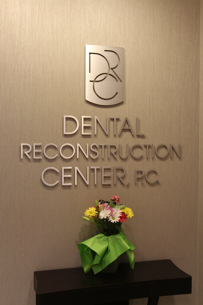 Brushed Aluminum Panel with Raised Aluminum Letters on Face for dental office lobby sign