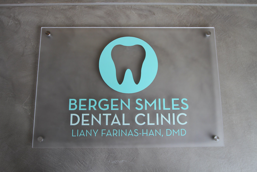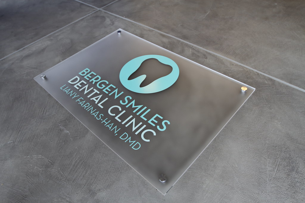 Dental Clinic Lobby Sign Frosted acrylic panel with Full Color digital printed image and graphics on face