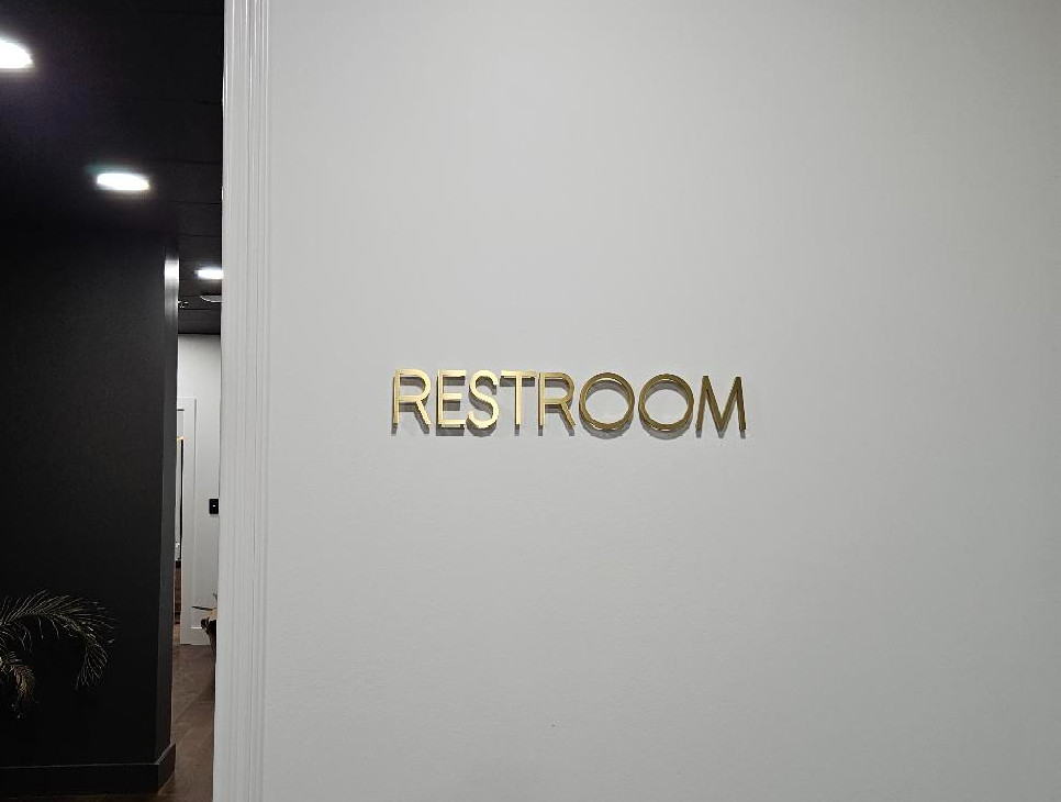 Brass Letters and logo interior drywall sign
