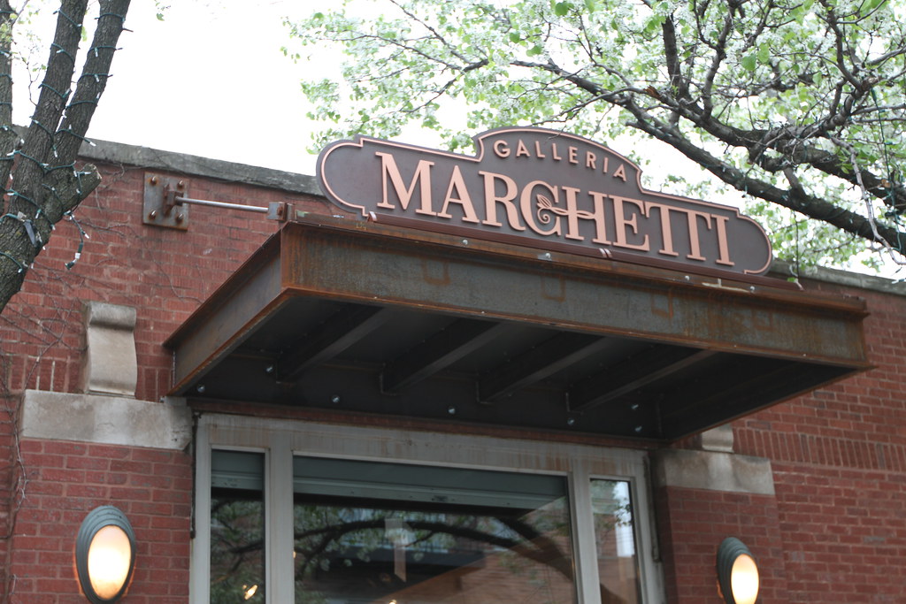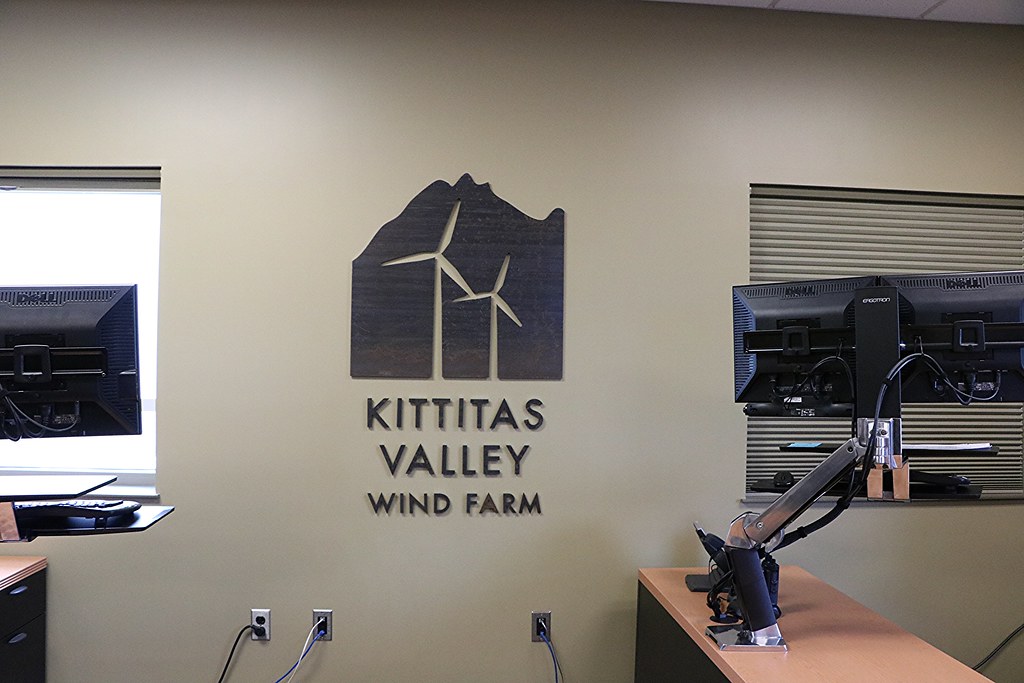 Corten steel panel with copper logo and letttering assembled on face corten steel will 'bleed' rust over time onto surfaces