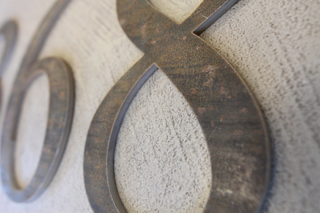 Detail of Corten Steel letter SOME rust will rust fully over time only in outdoor setting