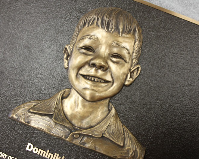 full body bas relief image on dedication bronze plaque