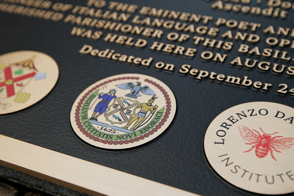 Bronze plaque with custom multi layer bronze logo assembled on face
