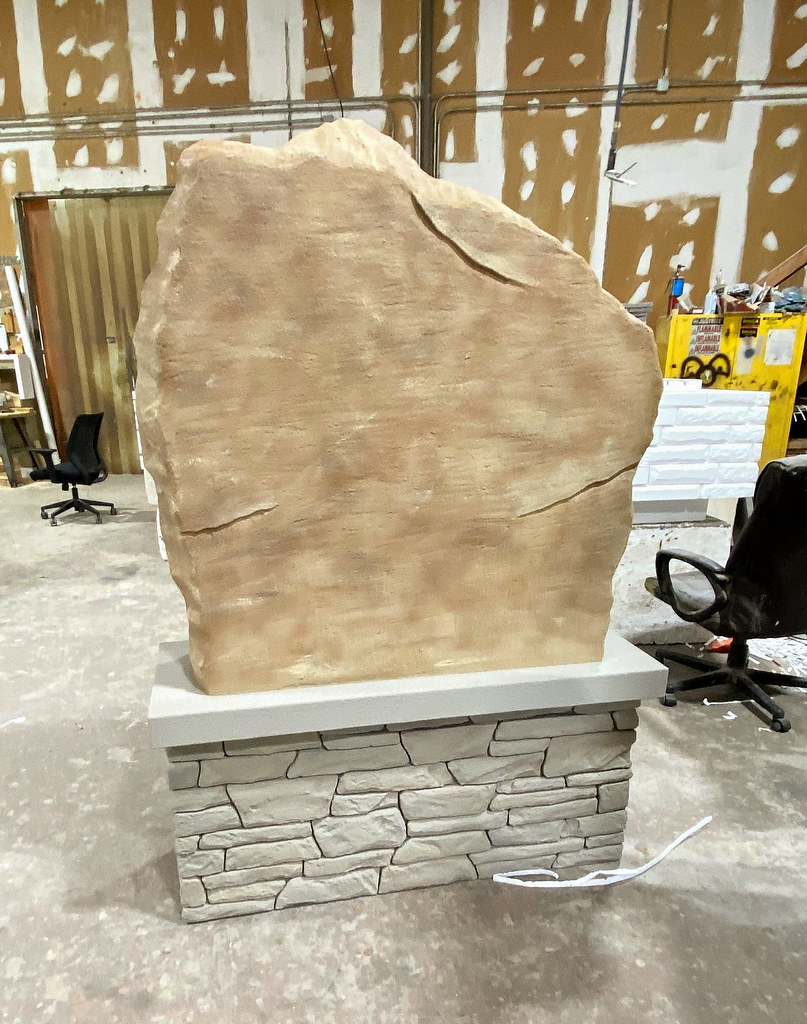 24"w x 18"h x 1/4" thick frosted acrylic panel B&W Halftone printed photo and Black text printed direct to face Includes (4) stainless steel stand offs for installation
