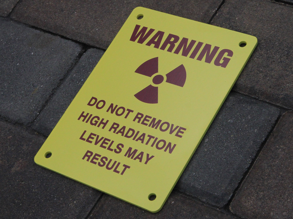 Full color UV text and hivis yellow background on metal panel sign with through holes for mounting