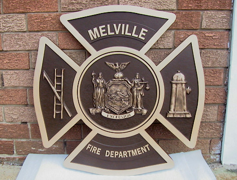 Custom shape cut to logo shape and relief images with raised text per FD logo