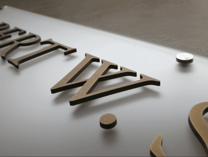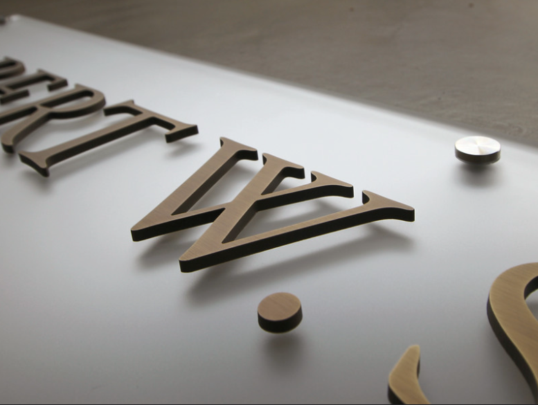 Cut bronze letters are commonly used for building signage, professional offices, public institutions, and memorial displays. Their warm tone and crisp profile make them a refined choice for both classic and contemporary settings.