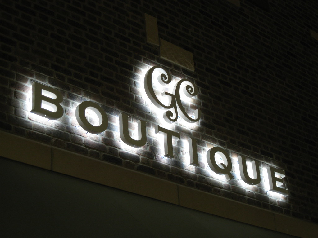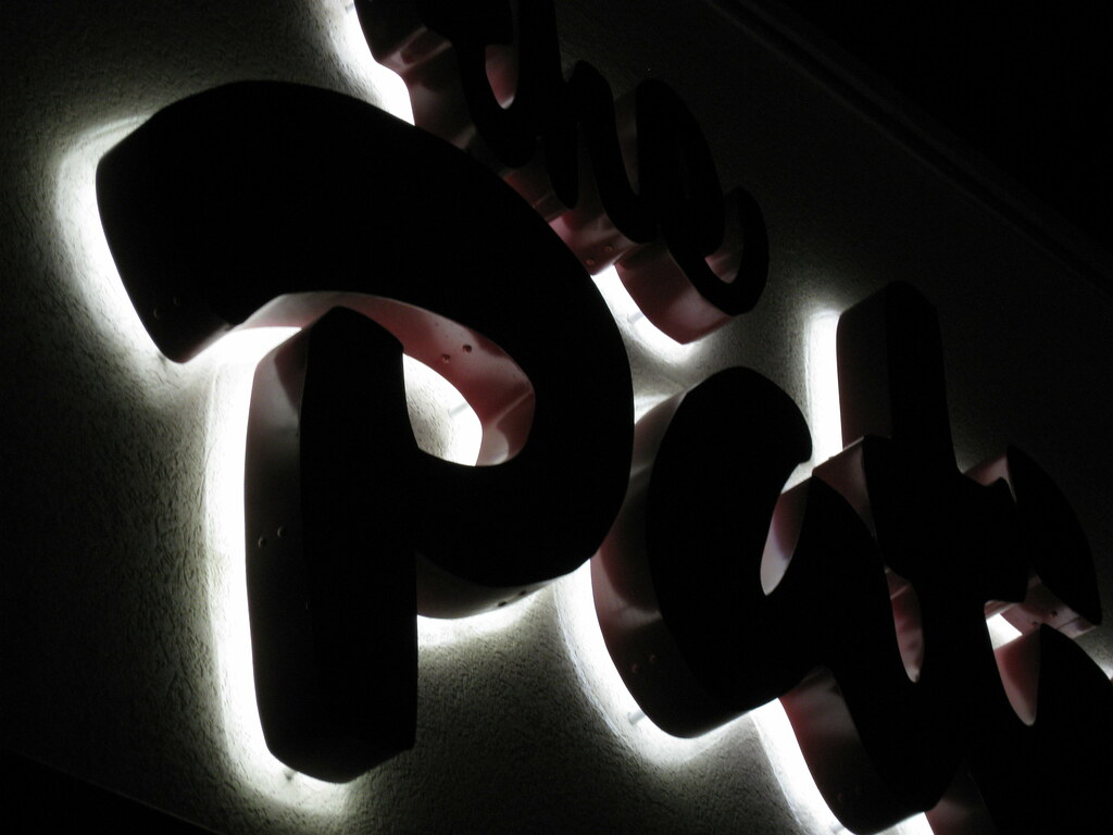 Fabricated Metal Letters backlighting reverse illuminated with LED lights.
