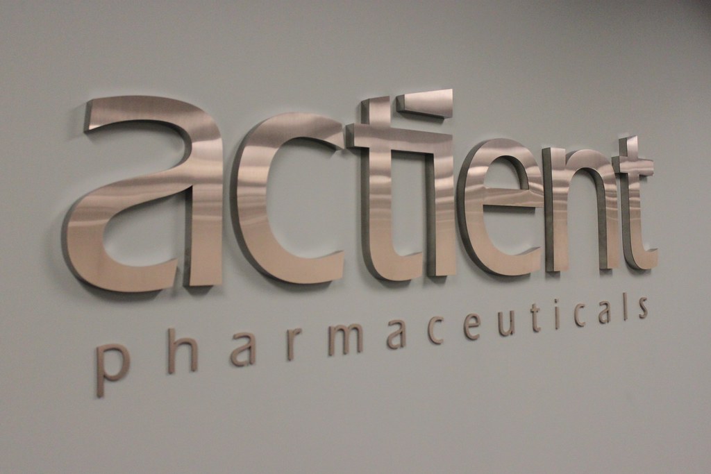 Brushed fabricated custom logo sign with cut pharmaceutical lettering