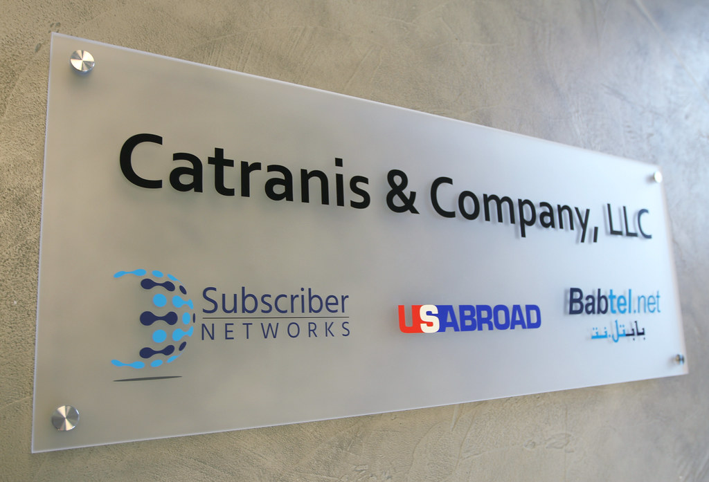 Corporate logo office signs full color graphics on frosted acrylic panels