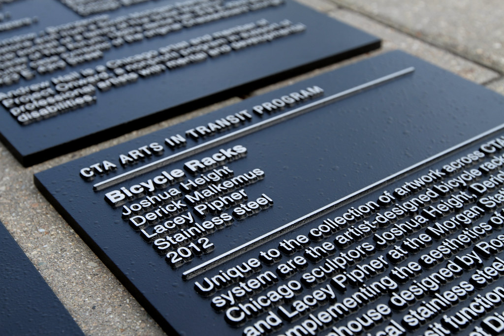 We recommend a ¼″ minimum height for all-caps and ⅜″ for mixed case text. Precision tooling and etching allow for smaller, more detailed fonts when needed. Our design team will adjust your layout to ensure legibility.