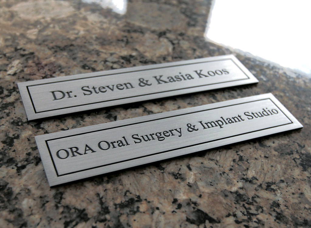 2" x 9" Brushed Stainless Steel name plates with Black etched text
