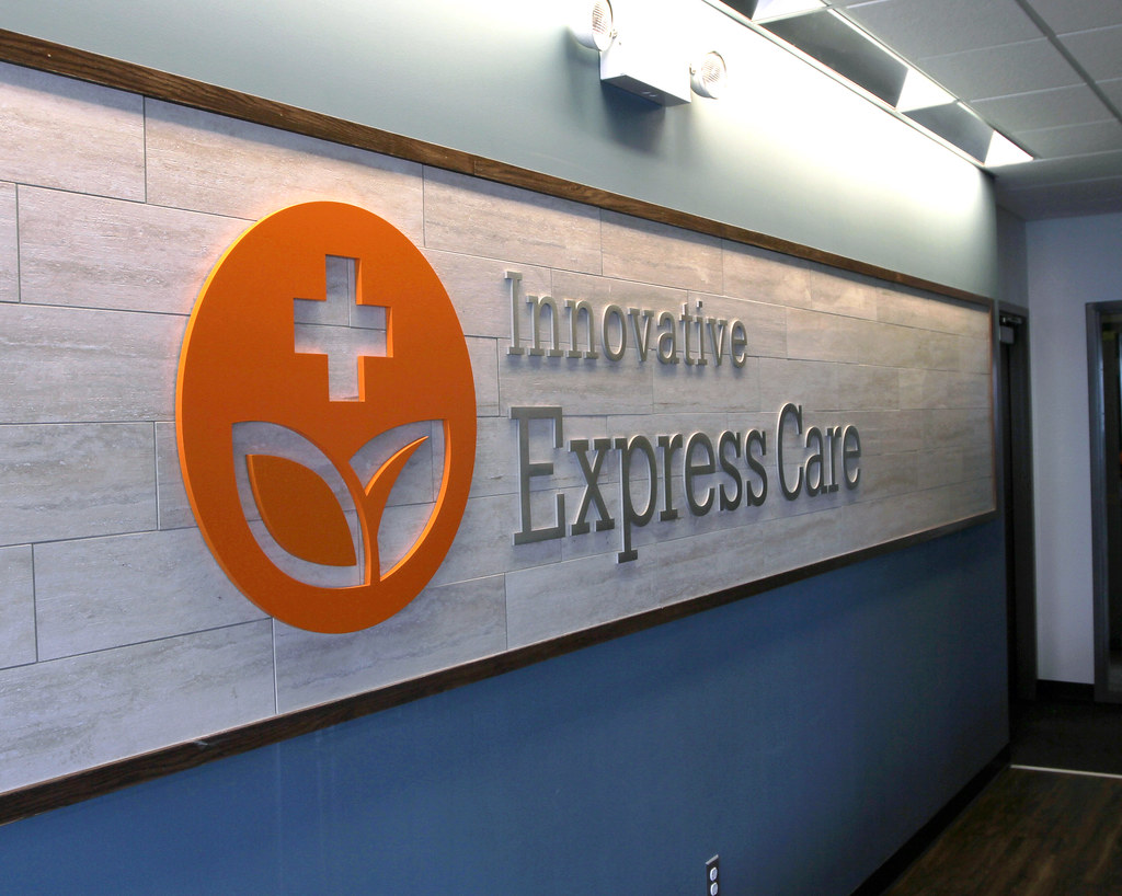 Natural Brushed Aluminum Logo & Letters stud mounted with spacers for medical center.