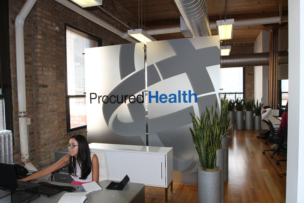 Custom Logo Etched into glass and illuminated with our custom rail mounted LED system. Interior Office Logo Signage