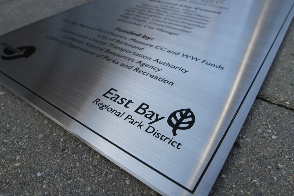 We offer etched stainless steel plaques in a brushed finish (most common), or polished finish (#8 finish). Standard thicknesses are ⅛ and ¼” thick, depending on plaque size and mounting needs. Recessed areas can be paint-filled in black, white, or custom colors for contrast and branding alignment. UV printed full color images and logos are also available.
