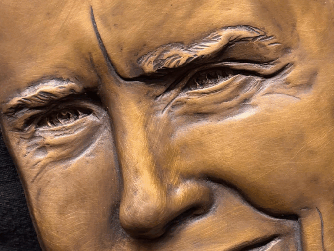 We recommend a minimum plaque size of 16" × 20" for a single portrait to allow for sufficient sculptural detail. Larger plaques such as 18" × 24" or 24" × 36" are excellent for even greater dimensional refinement. The sculpted portrait typically ranges from 8" to 18" tall, but can be larger if needed.