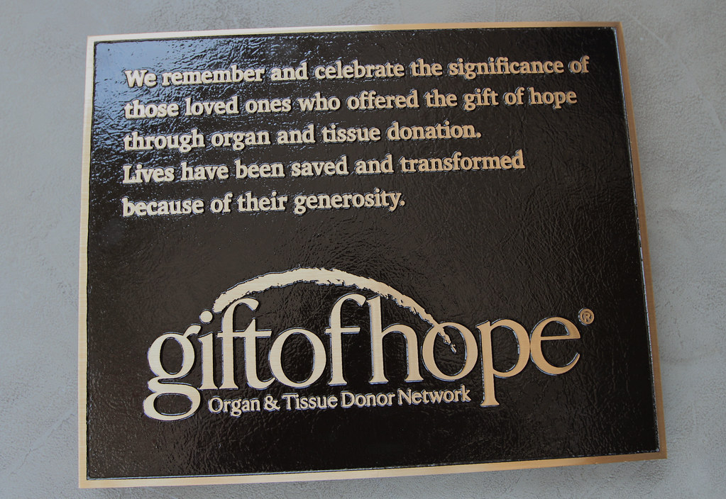 You can customize your donor plaque with raised text, logos, custom fonts, paint-filled backgrounds, and decorative borders. We can match your campaign branding or architectural style. Background colors can also be Pantone-matched if needed.