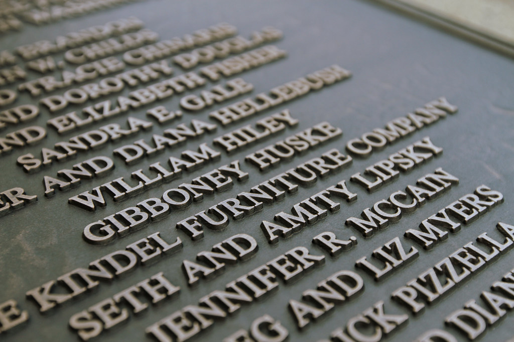 We design donor walls with expandability in mind. You can add additional bronze plaques or panels as new donors are recognized. We’ll match sizing, finish, font style, and layout to maintain a cohesive appearance as your wall grows.