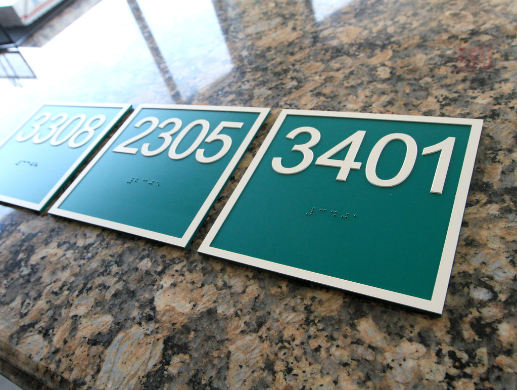 Satin Aluminum frames with ADA Acrylic engraved inserts with Grade II Braille