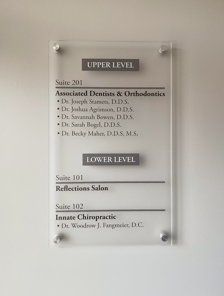 Acrylic Directory Panel with UV printed text for multilevel Medical Office Lobby
