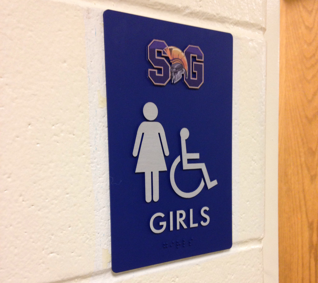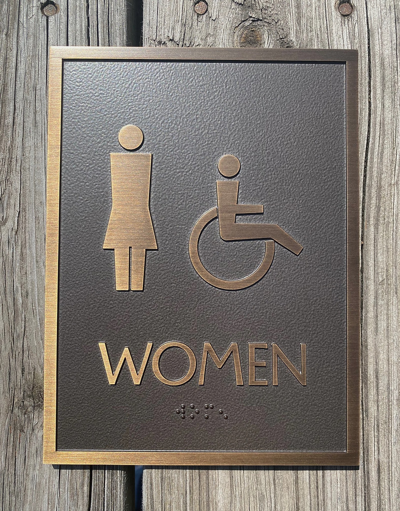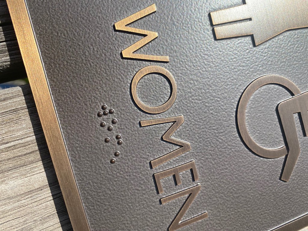Bronze oxidized finish plaque with ADA Braille restroom ADA Sign