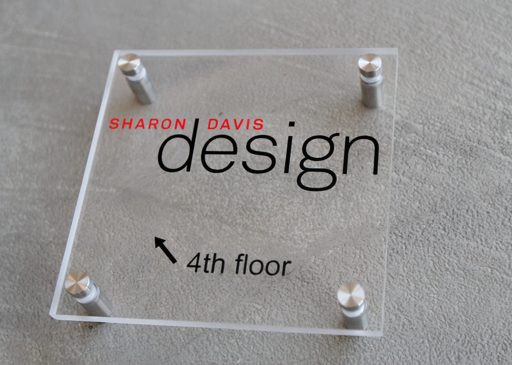 Clear acrylic panel. 4 Stainless steel standoffs for installation. Sharon Davis Design