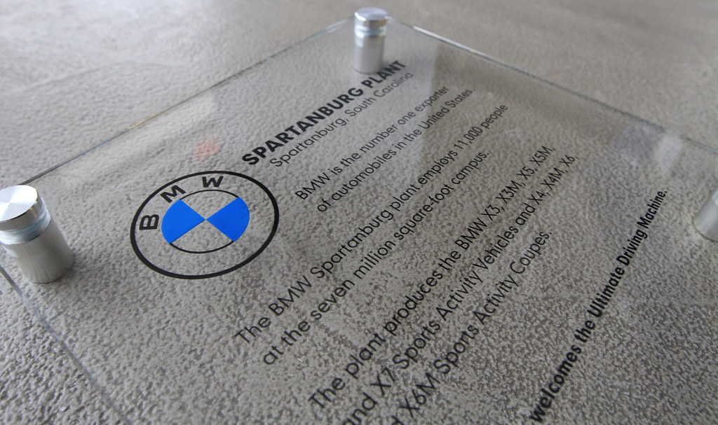 Room ID Plaque Etched glass with 2 color paint fill for BMW corporate office