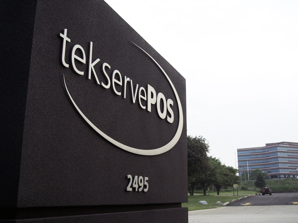 tekserv Foam monument sign with painted aluminum logo for outdoor corporate address location sign