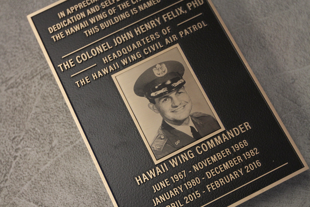 Yes. In addition to the portrait, plaques can feature: - Raised lettering for names, dates, and dedications - Background textures such as stippled, pebble, or leatherette patterns - Paint-filled backgrounds in standard or custom colors - Military branch seals, university logos, or civic emblems if needed