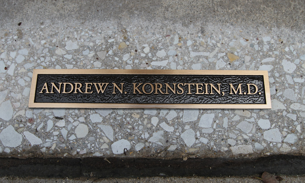 10"W x 13/4"H x 1/4"D BRONZE PLAQUE BLACK STIPPLE BACKGROUND BRUSHED BRONZE LETTERS SCREWS THROUGH FACE FOR CUSTOMER MOUNTING