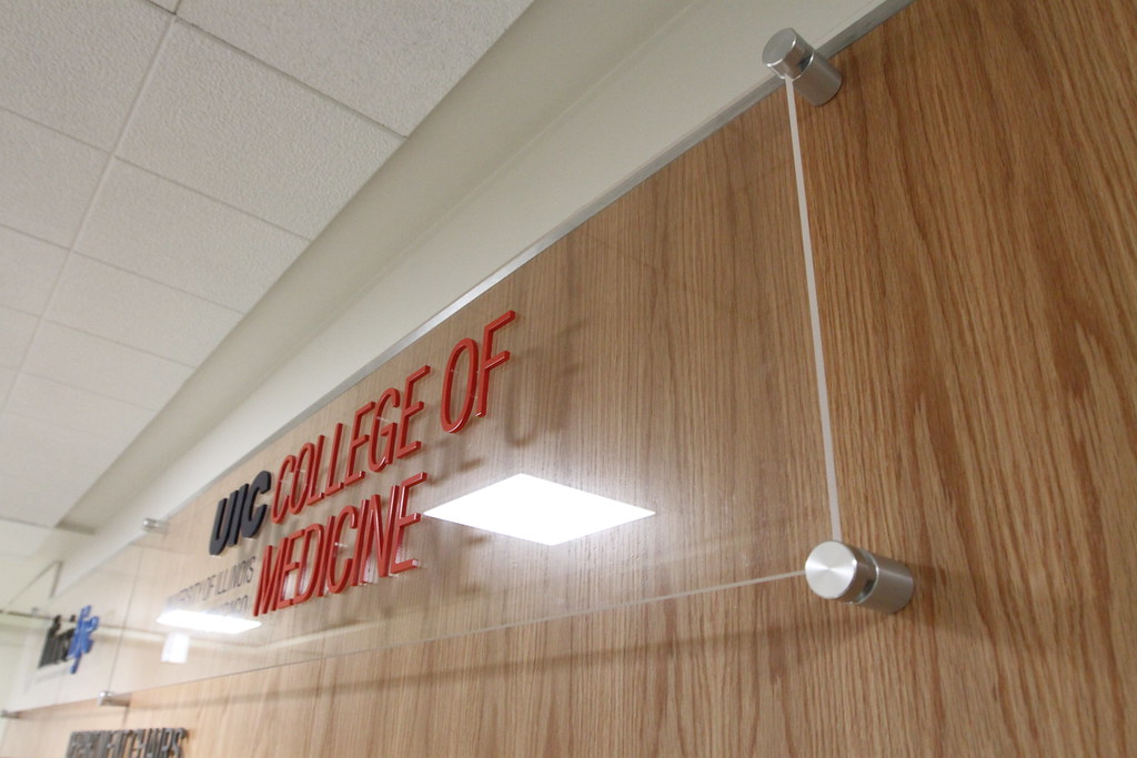 Acrylic Panel sign with Raised letters for UIC College of Medicine hospital wing