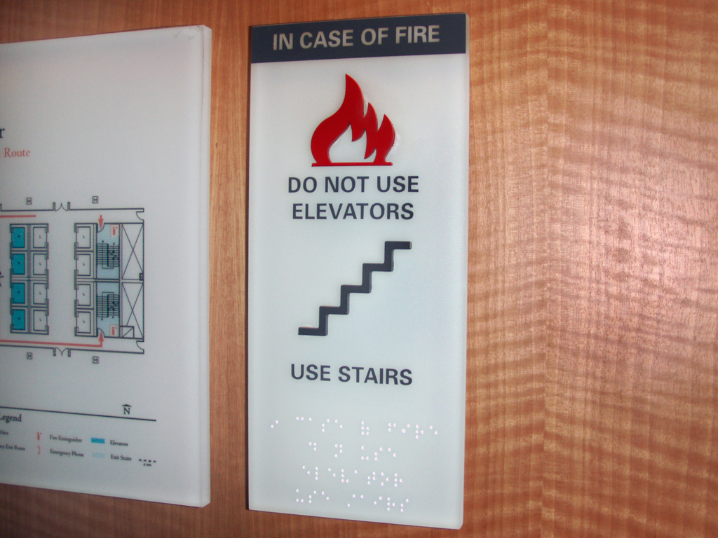 Simple line art drawing on face of Zinc or Aluminum for ADA Evacuation Map requirements.