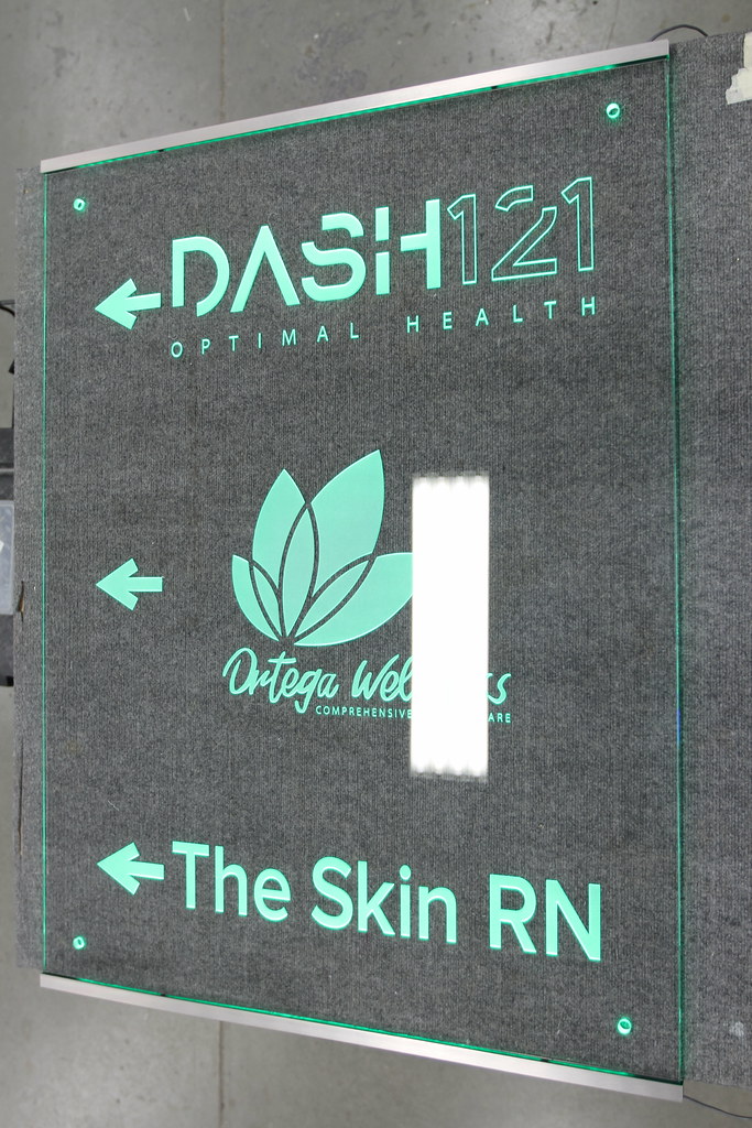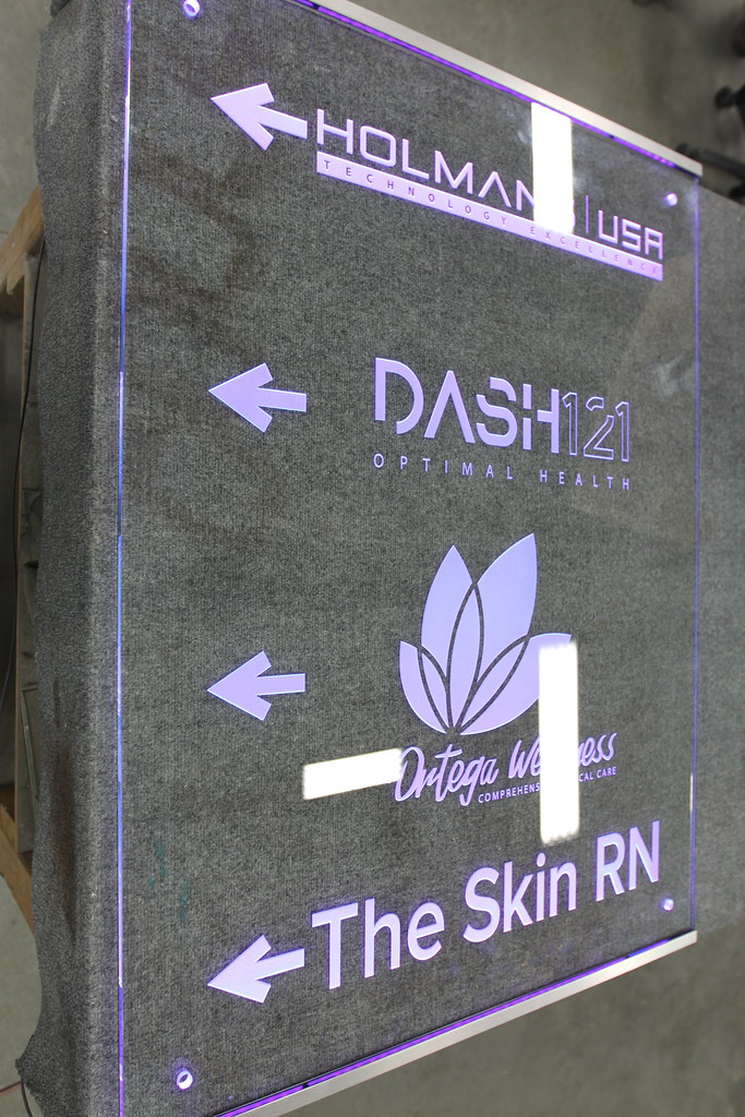 Edgelit panel sign with non illuminated logo and lettering interior orthodontic lobby wall