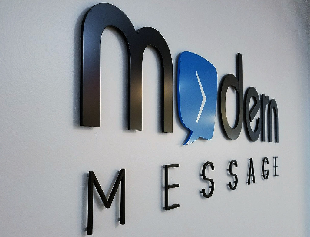 Brushed aluminum logo letters sign