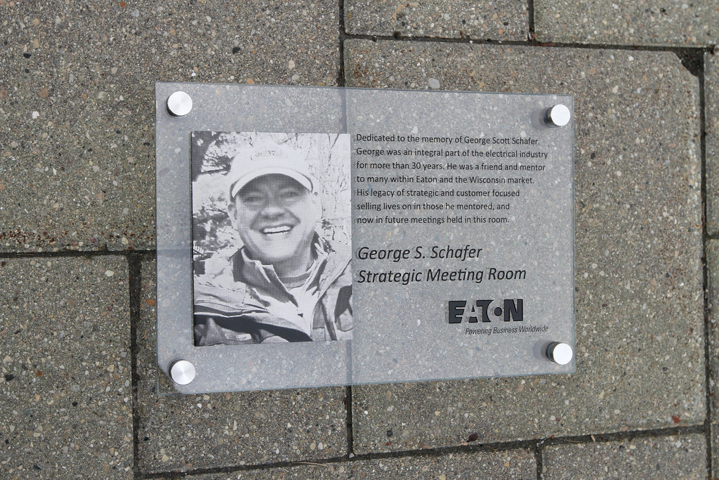 Etched Glass Sign with Etched Stainless Photo Plaque on Face