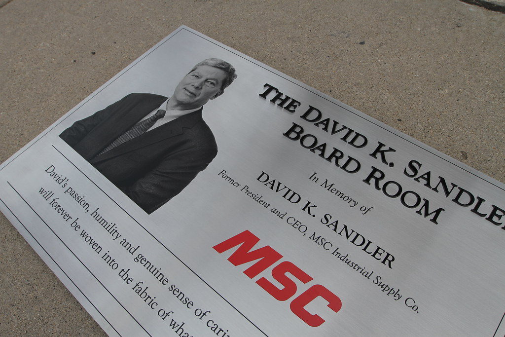 Etched Stainless Steel Plaque with PhotoEtch Image Ron Maurice Board Room Dedication Sign