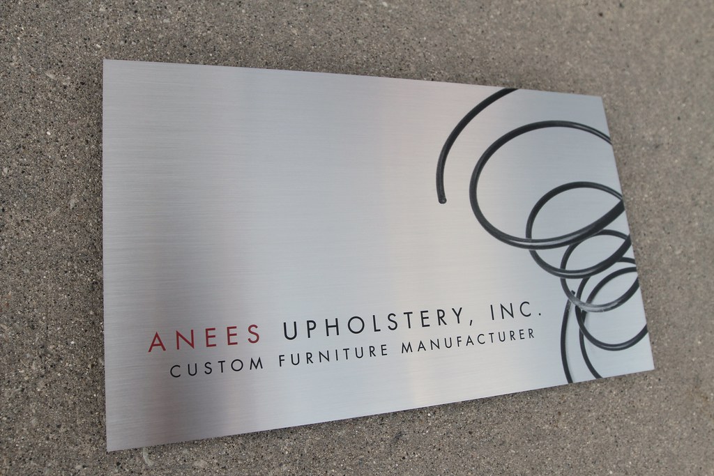 2 color UV logo on etched stainless steel plaque