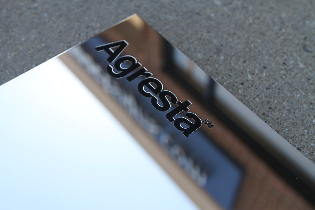 Exterior Grade Stainless Steel with Custom Etched logo on face paint filled black. Oversize plaque.