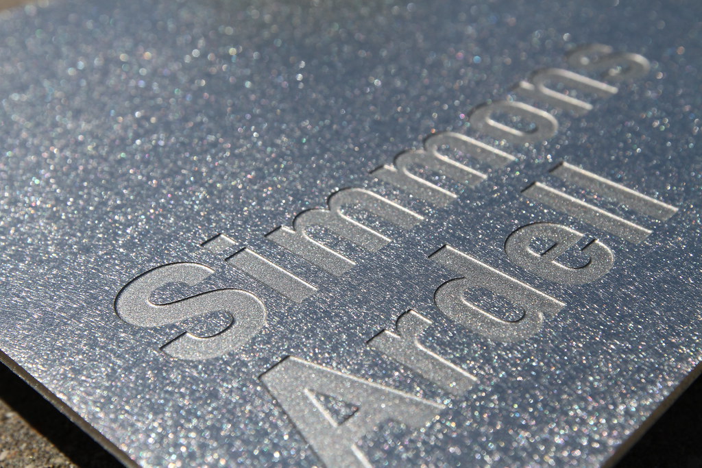 Random Orbital Etched stainless steel plaque with nopaint fill lettering