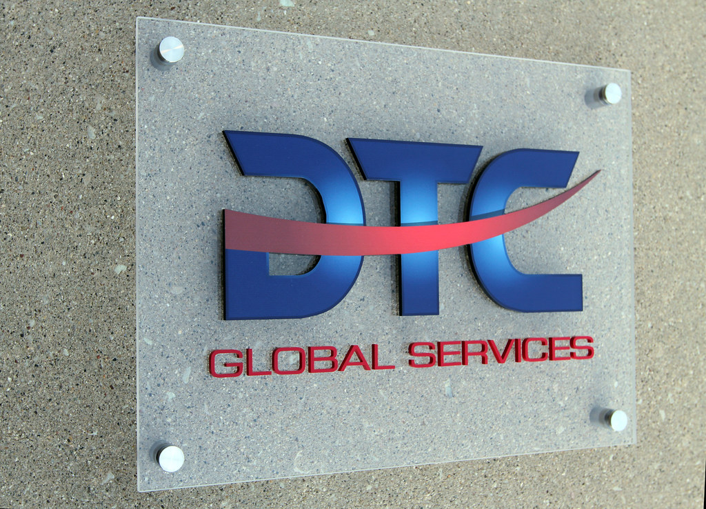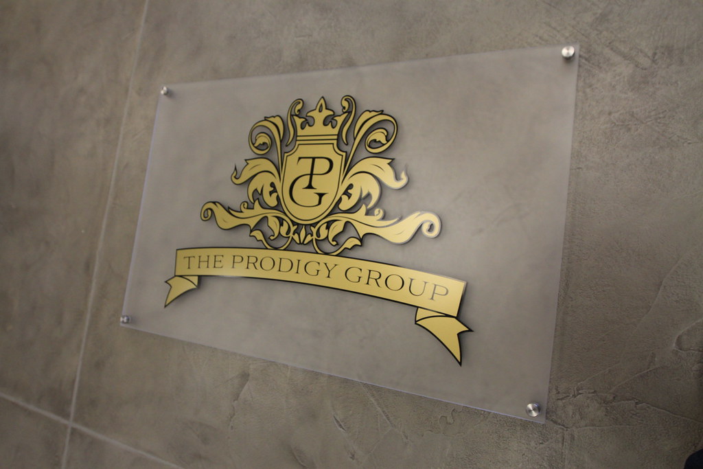 Corporate logo sign on frosted acrylic panel in full color UV graphic