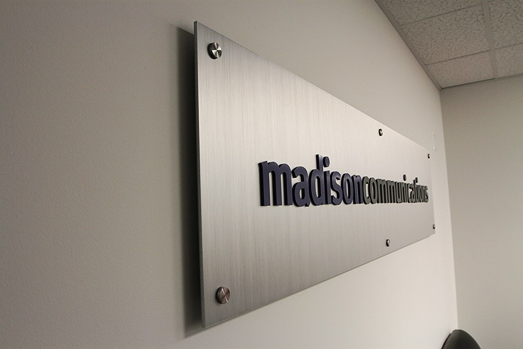 Brushed Aluminum Panel with Raised Aluminum Letters on Face