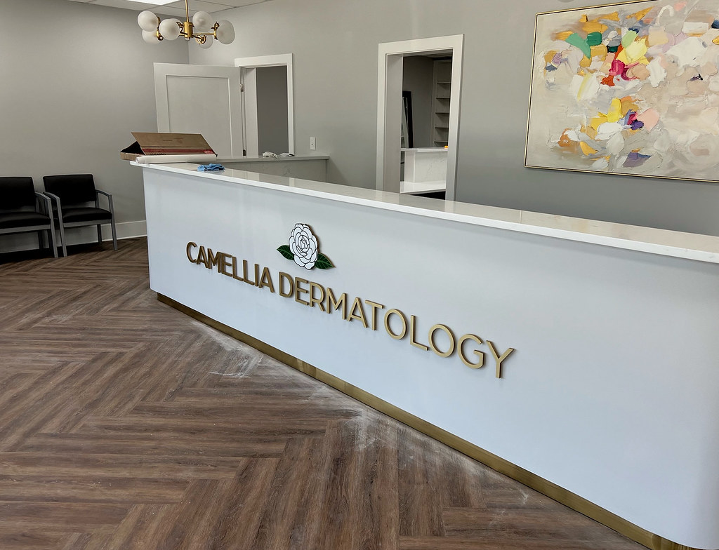 55" Overall Width 1" deep Fabricated Metal Letters Brushed Silver finish Hollow backs NonIlluminated Blind studs with pattern for mounting