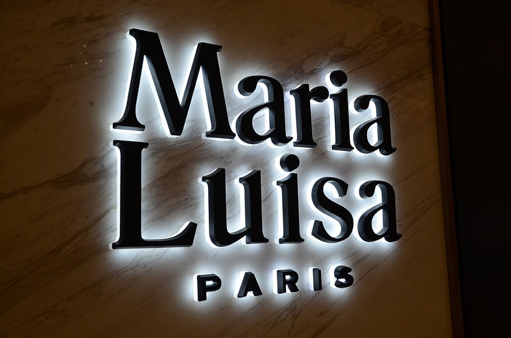 Fabricated stainless steel logo painted baked enamel white gloss finish